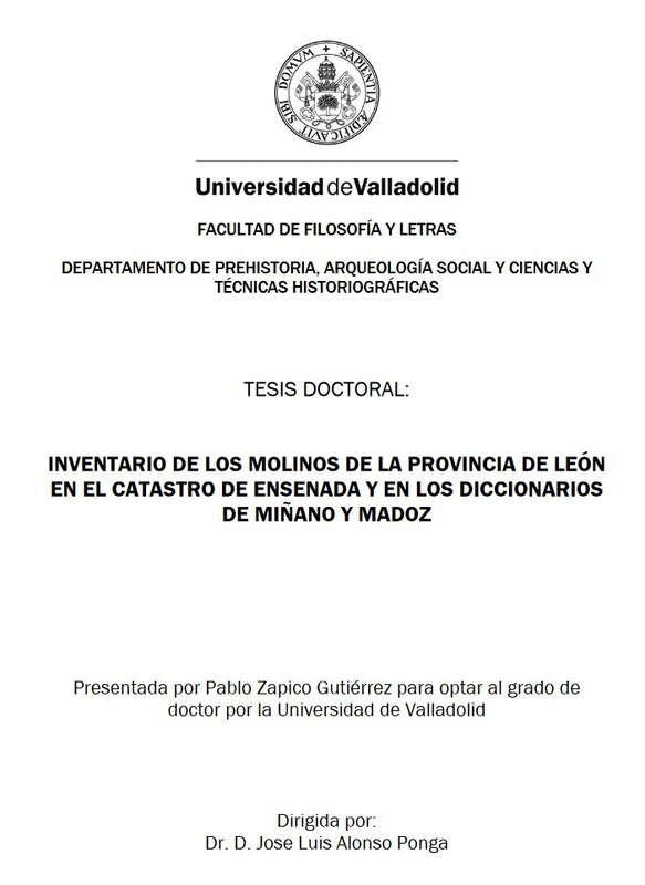 - Inventario de los molinos de la provincia de León en el Catastro de Ensenada y en los diccionarios de Miñado y Madoz