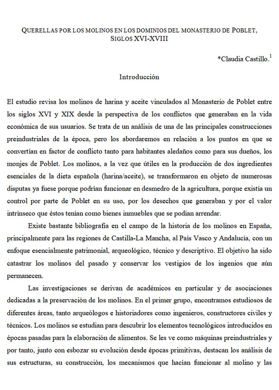 QUERELLAS POR LOS MOLINOS EN LOS DOMINIOS DEL MONASTERIO DE POBLET, SIGLOS XVI-XVIII